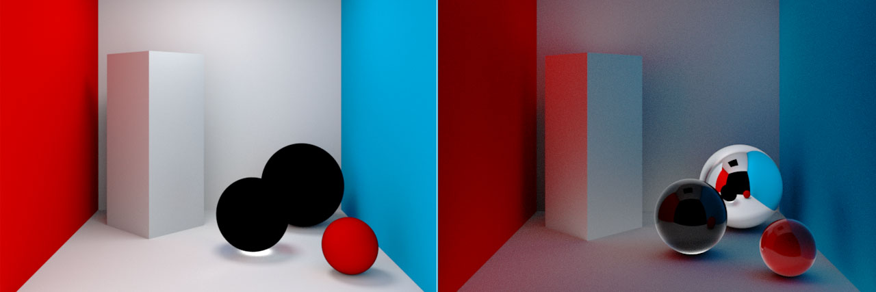 Surface reflection | Ray interaction | Examples for objects with reflective surfaces are metals (glossy) and wood (diffuse). |