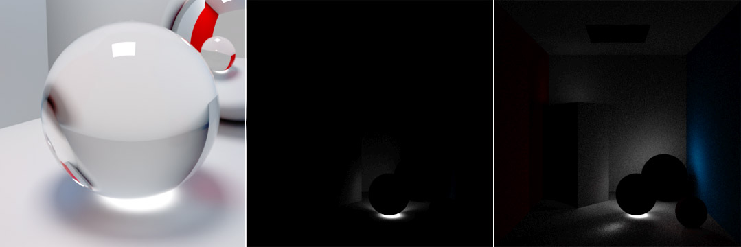 The complete LPE for caustics from the glass sphere is therefore CDT+L. This expression will strictly detect rays from transmissive objects. If you want to consider all types of caustics (reflective or refractive), you need a more robust expression like CDG+L.