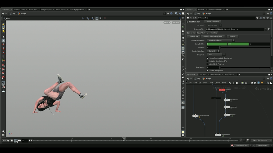 This Houdini Digital Asset is a full textured body rig, with vellum simulation setup for part of the clothing. The rig is ready for animation or testing purposes. This HDA was created by Bogdan Zykov for SideFX.