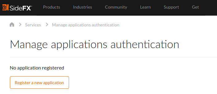 SideFX API is protected by an OAuth2 mechanism and requires you to first register your application with your user. So in order to use our API, you first need to generate your application credentials.