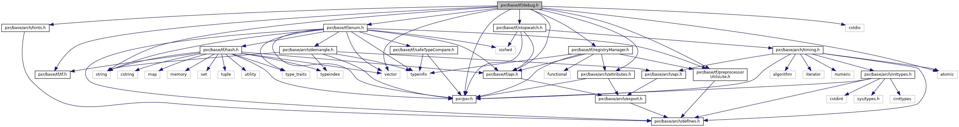 Include dependency graph for debug.h: