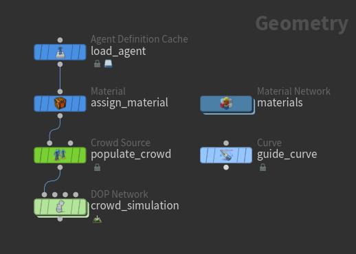 The crowd setup in the SOP network is shown below. The path that the horse agents follow is also defined in the SOP network: