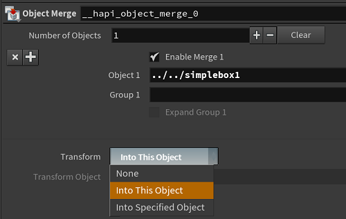This affects how the input object's transform is marshalled from Unity into Houdini. When geometry is marshalled to Houdini through an input, an Object Merge node is used to connect the asset and the geometry. For Node Inputs, the Object Merge node is automatically created by Houdini Engine, and set up in the same way that an object merge is used for Object Path Inputs.