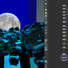 moon by painting & mix noises, emissive only and visible for primary|reflect, distant light for the light.