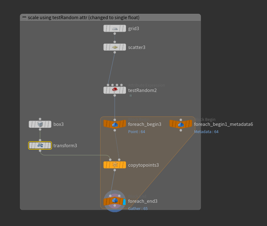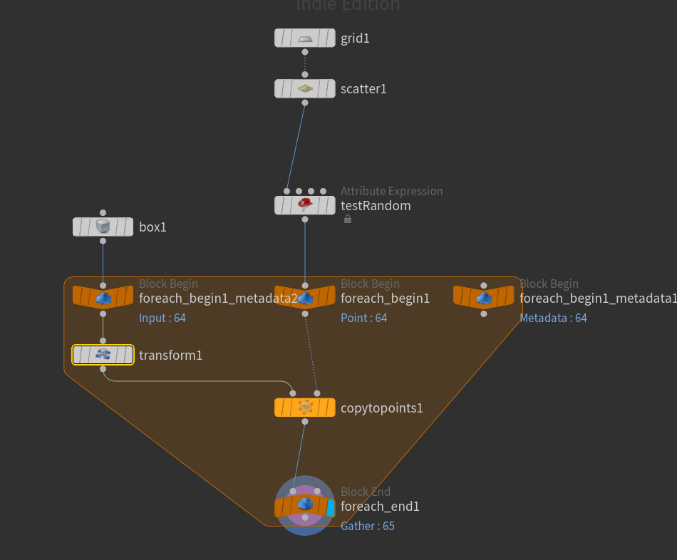 Cool, that's gonna take a bit of getting used to but thanks so much for making those examples aoakenfoArchiact! Yeah it looks like you don't need the second metadata node (thanks tamte). Out of interest how did you guys figure it out? Was it just intuitive to you? I think maybe i'm still not at one with the Houdini way, taking a while to reprogram my brain