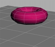 その結果、パーティクルをぶつけられるトーラスのシミュレーションになります。 パーティクルはトーラスで跳ね返り、トーラスが動きます。 さらに、各パーティクルの衝突によって、トーラスが少し凹みます。