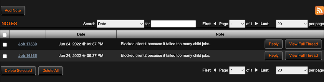 各クライアントと各ジョブは、ノートと呼ばれるスレッド化された一連のメッセージを追跡することができます。 場合によっては、状況の変化を示すためにノートが自動的に追加されます。 リマインド目的、他の管理者への伝達、クライアントやジョブに関する情報を追加するために手動でノートを追加することができます。