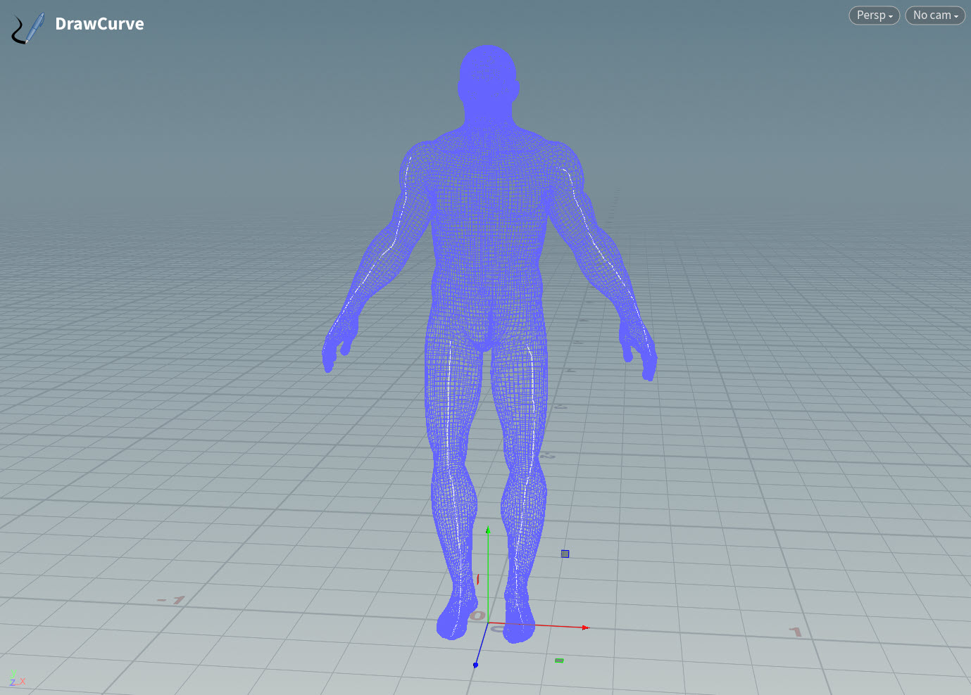 ビューポートで Tommy SOP を選択します。 Create ツールバーで Draw Curve を選択します。