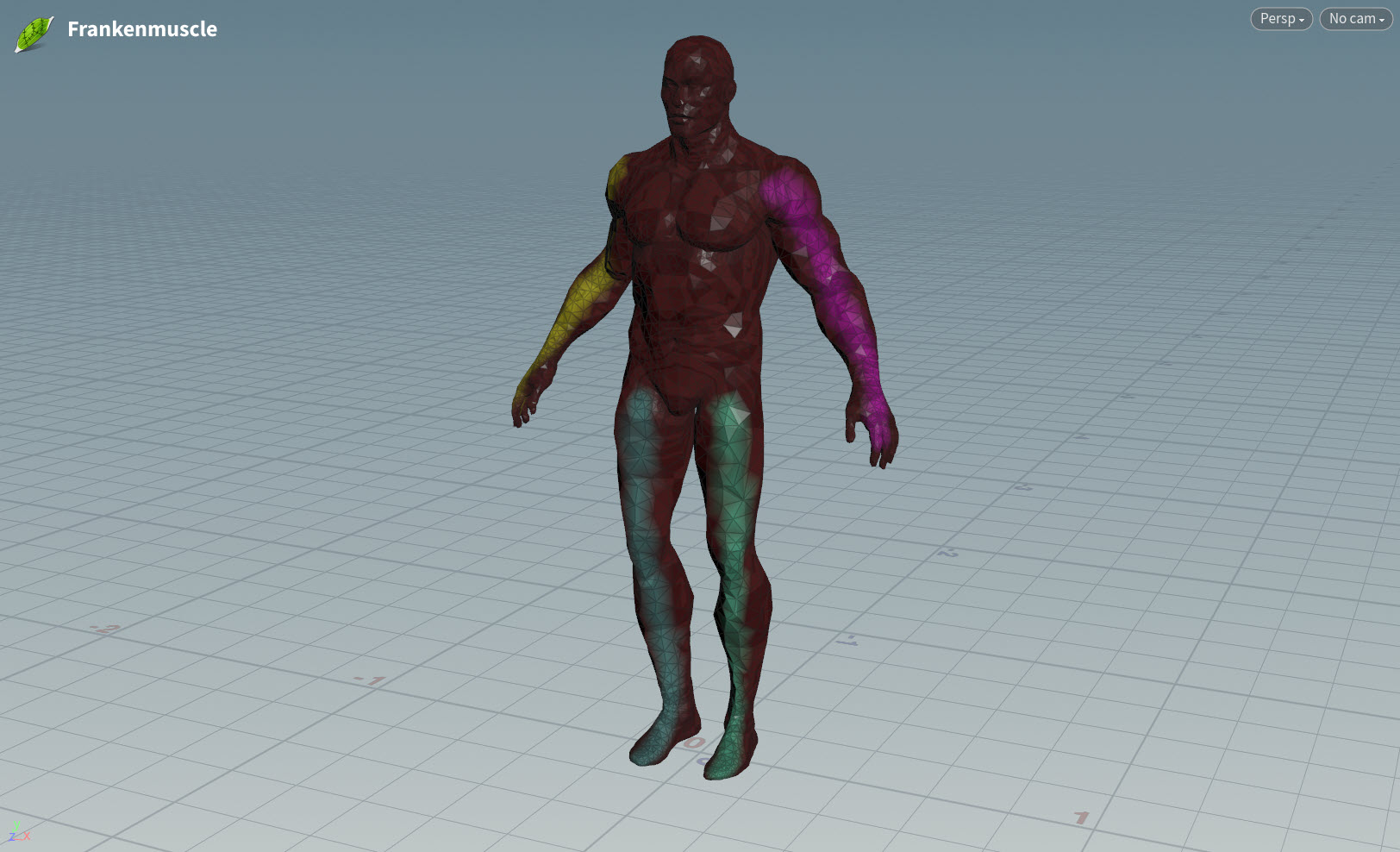 以下のFranken Muscleワークフローは、より大規模なMuscle & Tissuesワークフローの一部にすぎません。ニーズに合わせて、Franken Muscleと従来のMuscleワークフローを組み合わせることができます。詳しくはMuscles & Tissueのワークフローを参照してください。