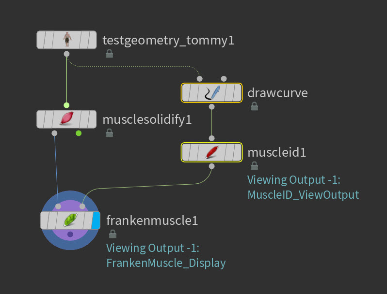 Franken Muscle SOP ノードを選択し、そのDisplayフラグをオンにします。