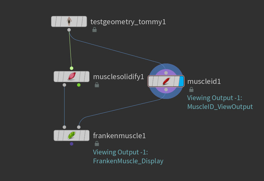 Muscle ID SOP ノードを選択し、そのDisplayフラグをオンにします。