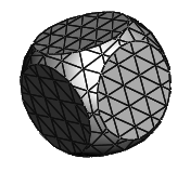 両方のオブジェクトは、開閉どちらでも構いません。このノードは、ポリゴンの法線によって“inside”と“outside”を判断します。 つまり、法線方向側が外側となります。 使用するサーフェスが開閉のどちらかに基づいて、 Check for Full Enclosure ( Boolean タブ)を変更します。