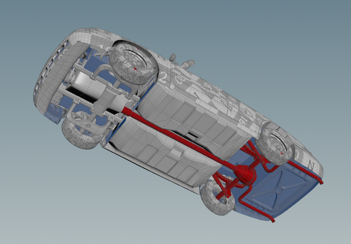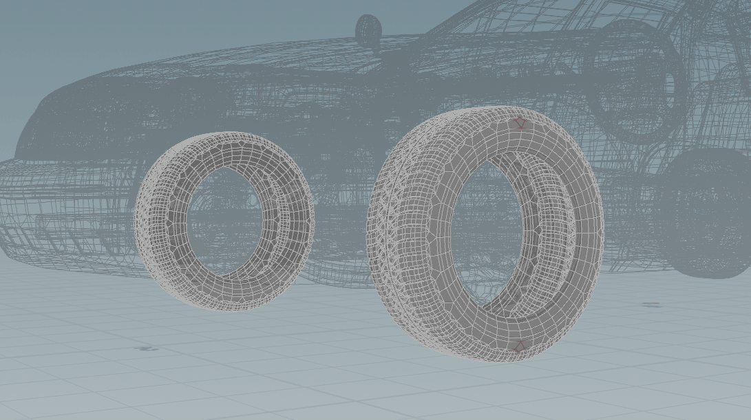 Since this is specific to each car and is better to create on static fractured geometry, it is done right before transforming the car. Once this is done, we can connect the geometry, constraints and proxy along with the simulation points, to the RBD Car Transform SOP. This node has Re-Align Wheels enabled by default and it is necessary to leave this as is in order to prevent any sort of weird rotations on wheels during the crash simulation.