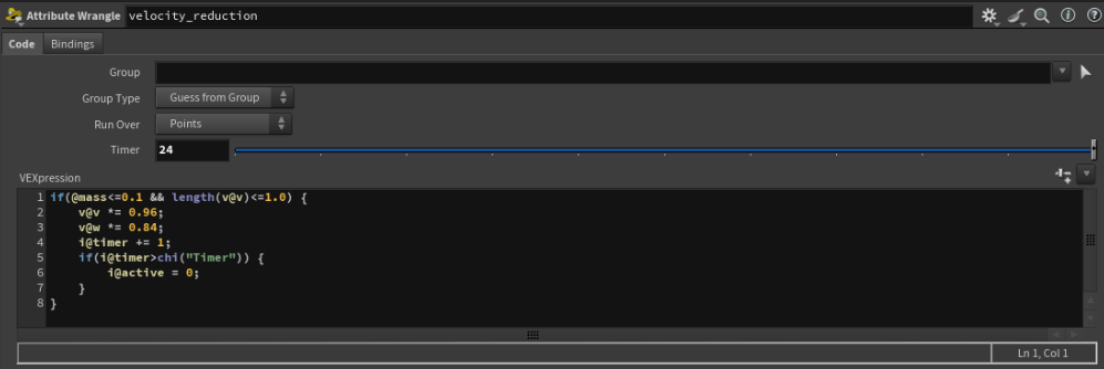 to launch off the ramp and continue through the scene. The VEX code is as follows: