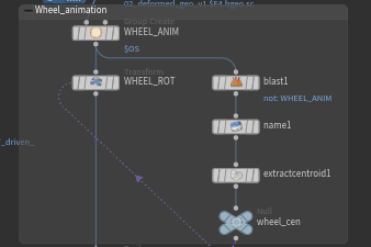 We use a separate Car Rig to keep the driving and fracturing processes independent. This makes it easier to iterate on the driving—tweaking parameters like Speed or Steer—without needing to re-fracture the car each time. However, if significant changes are made to attributes such as Wheel Scale or Center of Mass, it's important to update this Car Rig and re-fracture the car to maintain accurate simulation results.