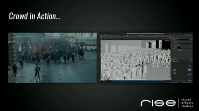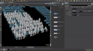 Houdini's crowd tools use artist-friendly shelf tools along with packed agent primitives, a Finite State Machine solver and hardware accelerated display of instanced crowds to bring heavily populated shots to life. To art direct the results, you have access to controls for crowd layout, rag doll dynamics, steering, collision avoidance, terrain adaptation, motion blending, and look-at targets. All of these capabilities allow you to create believable motion amongst the masses.