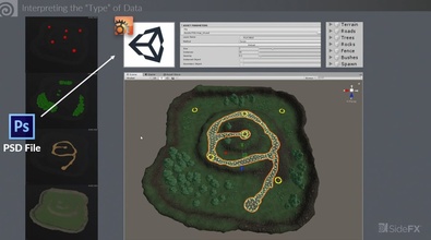 In Houdini, networks of nodes can be easily wrapped up into Houdini Digital Assets then shared with other artists. With the Houdini Engine, these assets can be loaded into the Unity game editor with procedural controls available to artists. This allows for deep integration of Houdini Digital Assets into a Unity game development pipeline. The game content is baked out when the game is published.