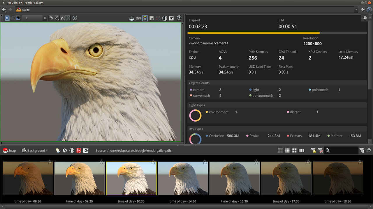 Houdini has USD-based Solaris tools designed to set up layout, lookdev, and lighting for multiple shots. Use Copernicus for textures then render photo-realistic images using Karma.