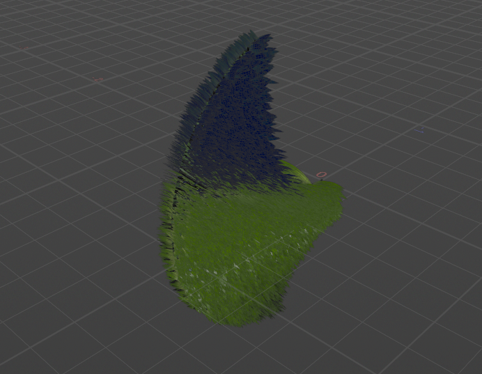 For the moss creation, I started by painting a mask attribute on polygons. The featherness and softness of the mask will directly influence our moss size. It’s nice to have a procedural tool like that to easily change the final look of scattered geometry. While working on this project, I changed that mask a dozen times. As you can see, I altered the mask values to be closer to zero if the point is closer to the edge, I also added some random clusters with uniform mask values. They look like a small green island: