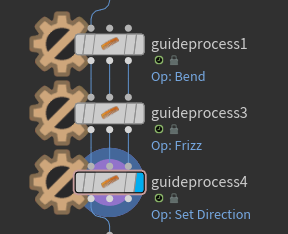 For the grass, I saturated it with the same procedure of adding a mask attribute to the branch geo and scattering some lines accordingly. After that, I added some attributes for future guide processes like bendir and div. For the last one, I used attribute vop node. I used three different guide process nodes to add some bend, frizz, and direction to the scattered lines.